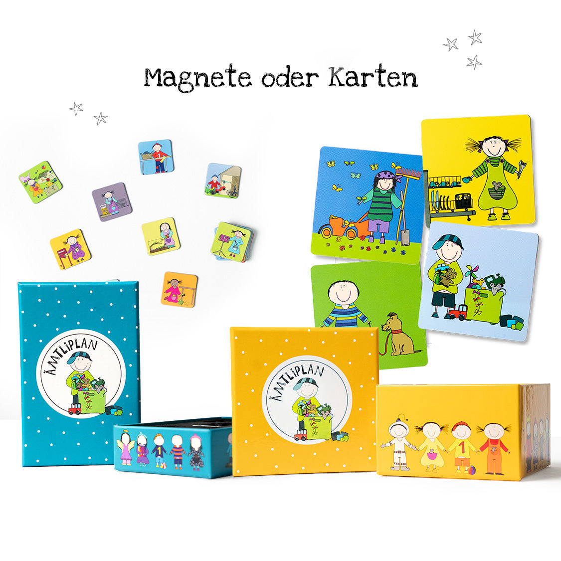 - Flexibler Familien-Aufgabenplan: Karten lassen sich täglich oder wöchentlich neu verteilen