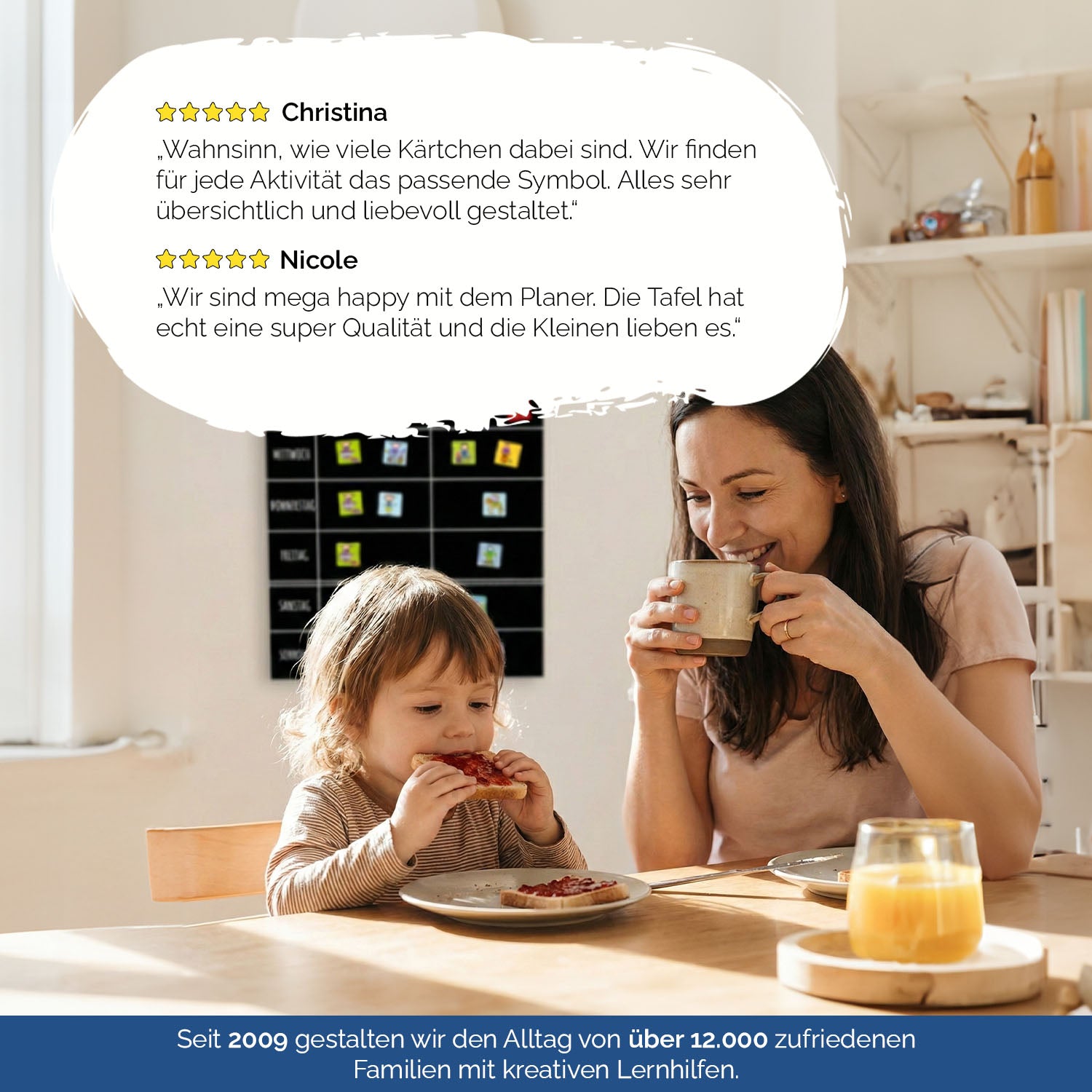 Wir sind mega happy mit dem Planer. Die Tafel hat echt eine super Qualität und die Kleinen lieben es.